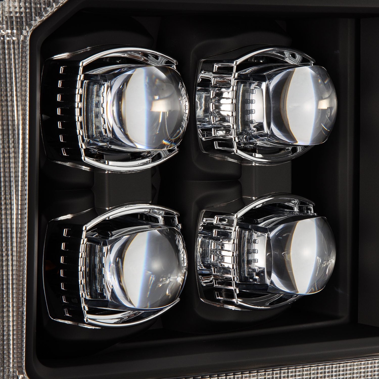 The NOVA-series full LED headlights are composed of AlphaRex patented Ice Cube 3D LED projector. We apply the Osram Oslon black flat LED chip for our projector, and the projection cut-off line is perfect for American LHD regulation.