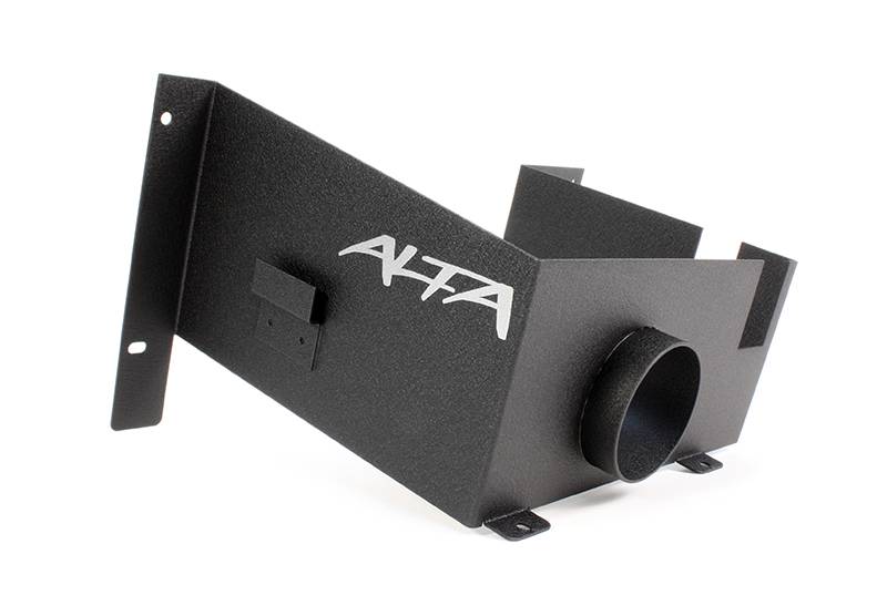The ALTA Cold Air Box is formed from laser cut aluminum sheet metal then CNC bent to perfection. Then finished in a rich black texture powdercoating for long term protection and an O.E.M. look. Our air box seals to the underside of the hood preventing under-hood heat from entering the intake air stream.
