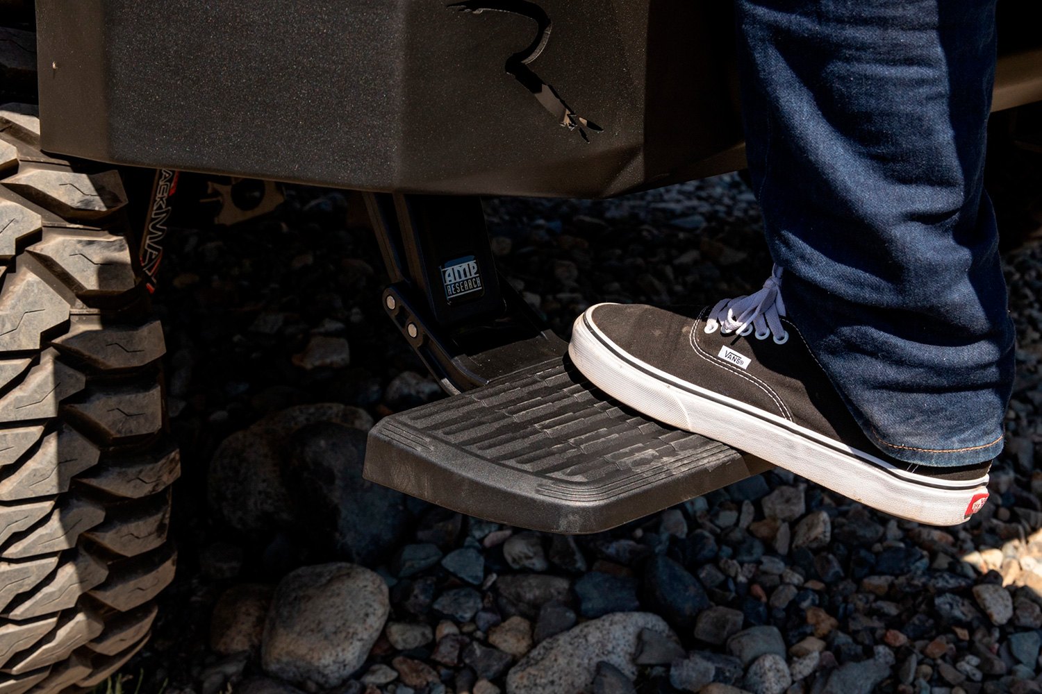 The AMP Research Bedstep®2 mounts just behind the cab, forward of the rear wheel, providing a faster, easier and safer route to access toolboxes, equipment and cargo in the bed. Easily installed, this frame-mounted, retractable truck step can be mounted on either side of the truck box, and it flips down or retracts with just the nudge of your foot.