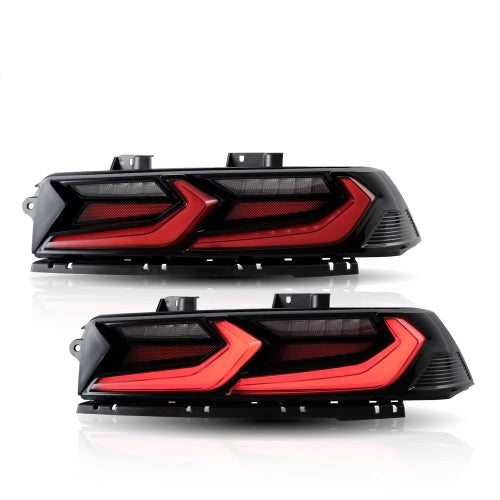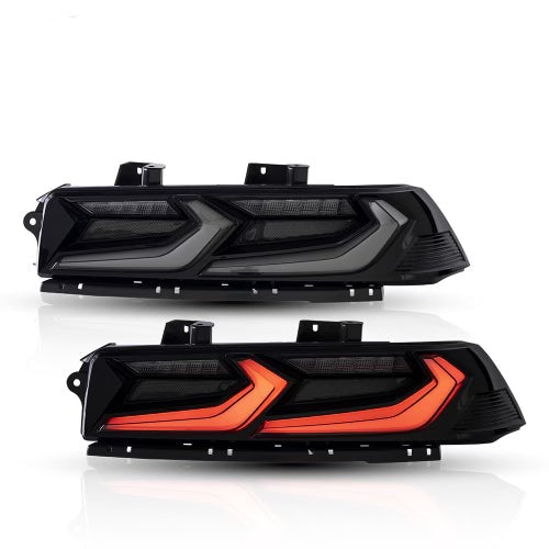 Draw the eye with ultra-bright LED taillights that celebrate speed. This plug-and-play kit is pre-assembled and easy to install in your 2014-15 Chevrolet Camaro LT, LS, RS, SS, Z28, or ZL1. These daytime running lights sweep toward the outer edge of the glossy black housing with a modern sense of motion. Crisp white reverse lights and red signals shine bright to turn heads.