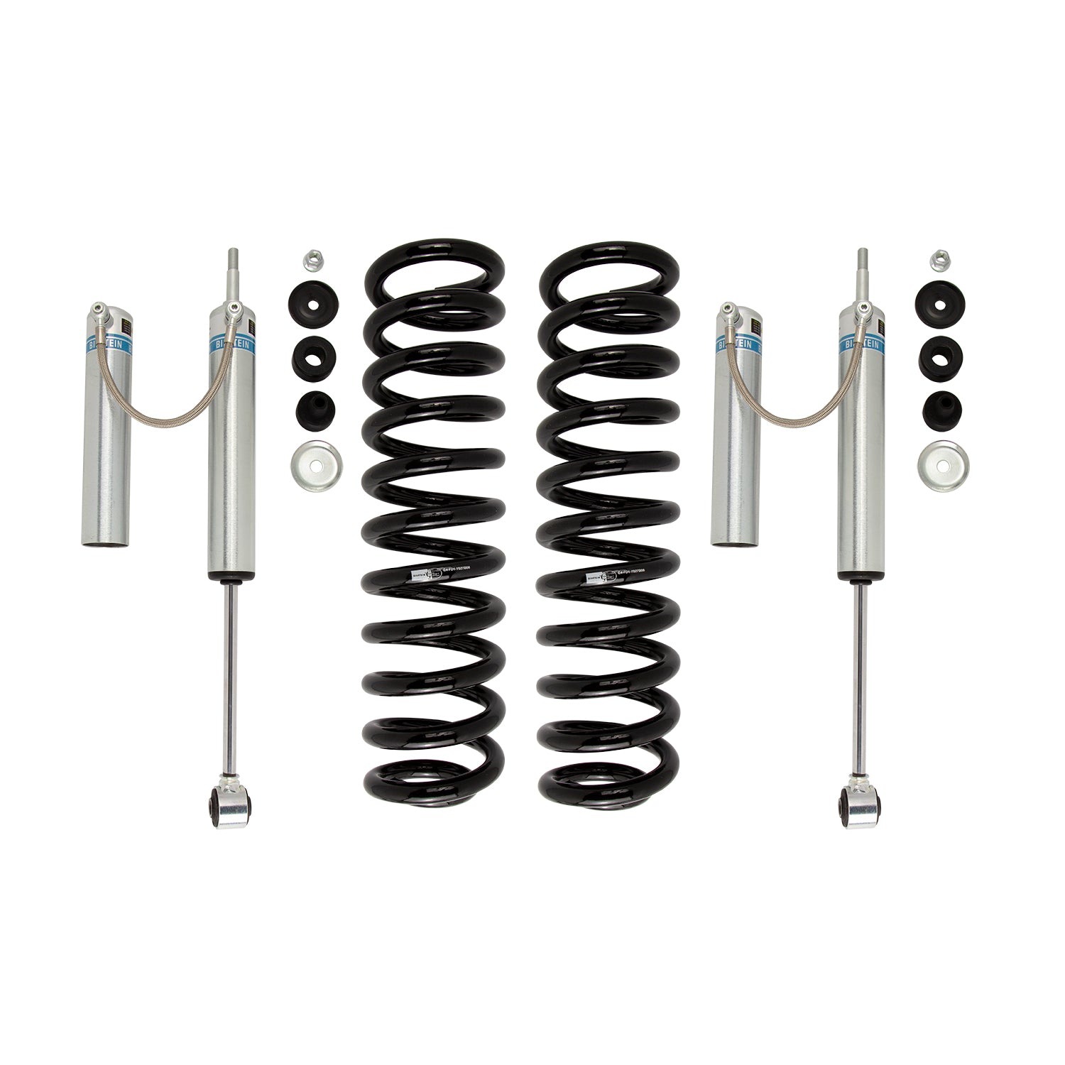 The Bilstein B8 5162 suspension kit is a high-performance leveling solution designed to boost ground clearance, support larger tires, and enhance wheel travel. Engineered for front applications, the kit includes two B8 5160 shock absorbers paired with two matched coil springs. This straightforward setup bolts into factory locations without needing any modifications.