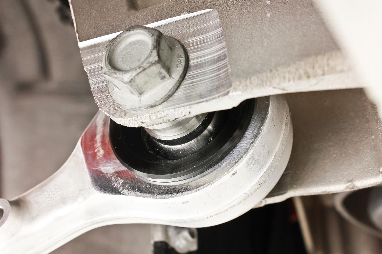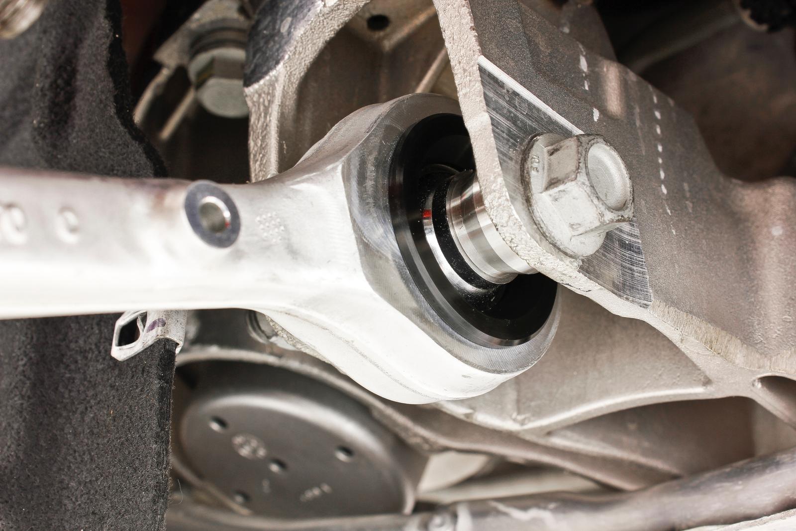Improve steering response and feel, and adding cornering consistency to your 2016-newer Chevrolet Camaro is easy with spherical lower control arm bearings from BMR Suspension. Soft rubber bushings deflect under load and absorb power instead of transferring it to the tires. BMR's spherical lower control arm bearings for Sixth Gen Camaros (BK071) feature a CNC-machined bearing cup and a heavy-duty 3/4-inch spherical bearing. This design eliminates bushing deflection, tremendously improving performance. Spherical bearings add a solid, more responsive feel over the stock rubber bushings. CNC-machined billet aluminum spacers complete the assembly. This allows for a perfect fit and increased performance for any driving style.