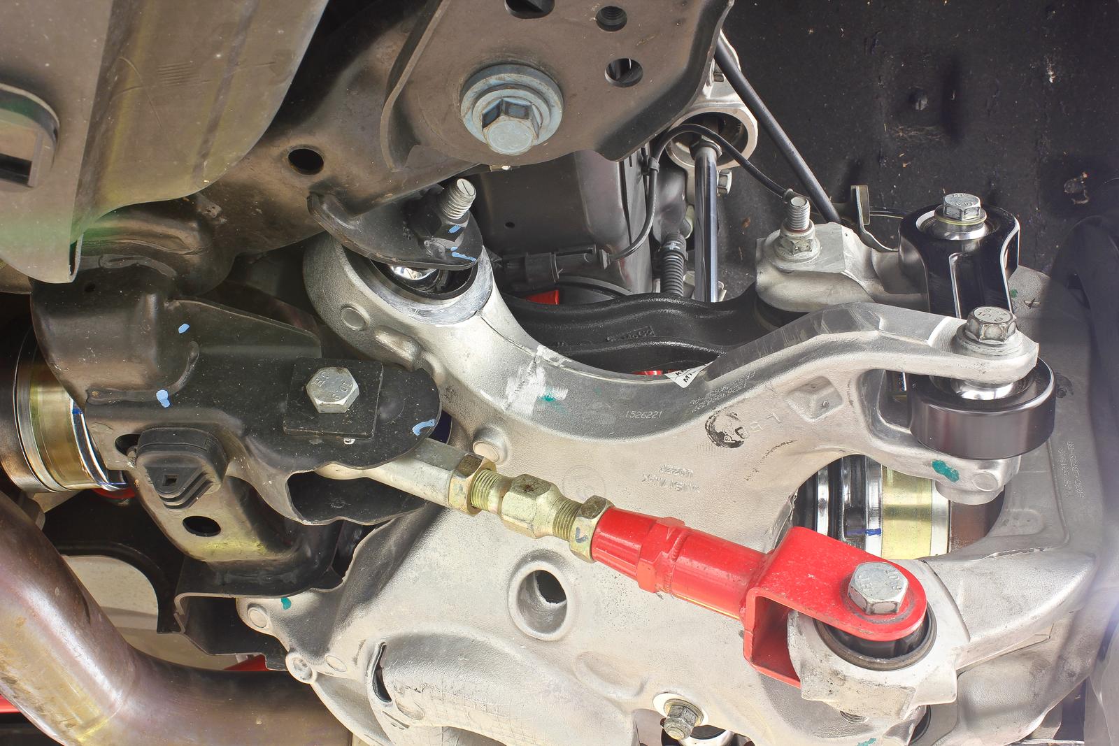- Eliminates rear lower control arm bushings deflection