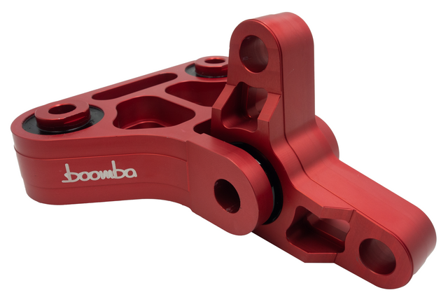 Our mount features molded-in polyurethane bushings, unlike the pressed-in bushings used by our competitors. This design results in a much more durable motor mount, as the collar cannot rotate within the bushing and cause friction. This mount stabilizes the engine during launches, hard acceleration, and aggressive turns, leading to more efficient power transfer to the ground.
