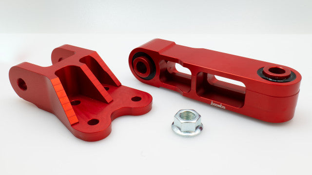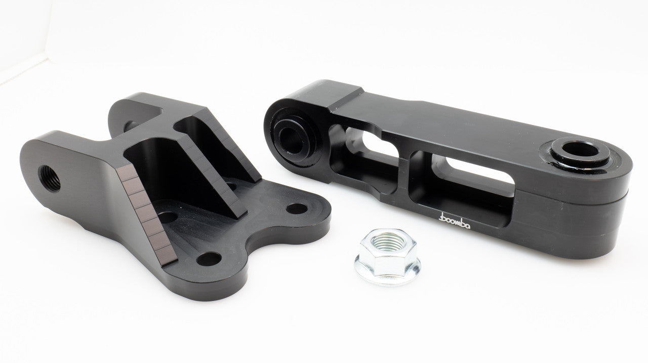 This mount is beautifully CNC machined from 6061 aircraft-grade billet aluminum at our Wood Dale, IL manufacturing headquarters. Unlike our competitors, our mount features hand-poured, molded-in polyurethane bushings instead of pressed-in bushings. This design ensures a more durable motor mount, as the collar cannot rotate in the bushing and cause friction. The mount stabilizes the engine during launches, hard acceleration, and aggressive turns, drastically reducing wheel hop and improving power transfer to the ground.