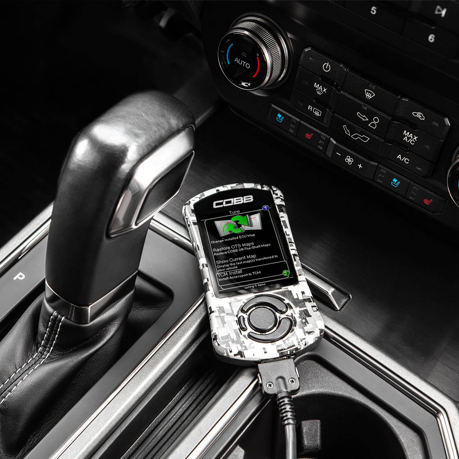 - TCM Flashing Capability: Enables flashing of the Transmission Control Module (TCM) with included Off The Shelf (OTS) tunes to fully customize shift points, shift firmness, skip-shift behavior, and torque limits.