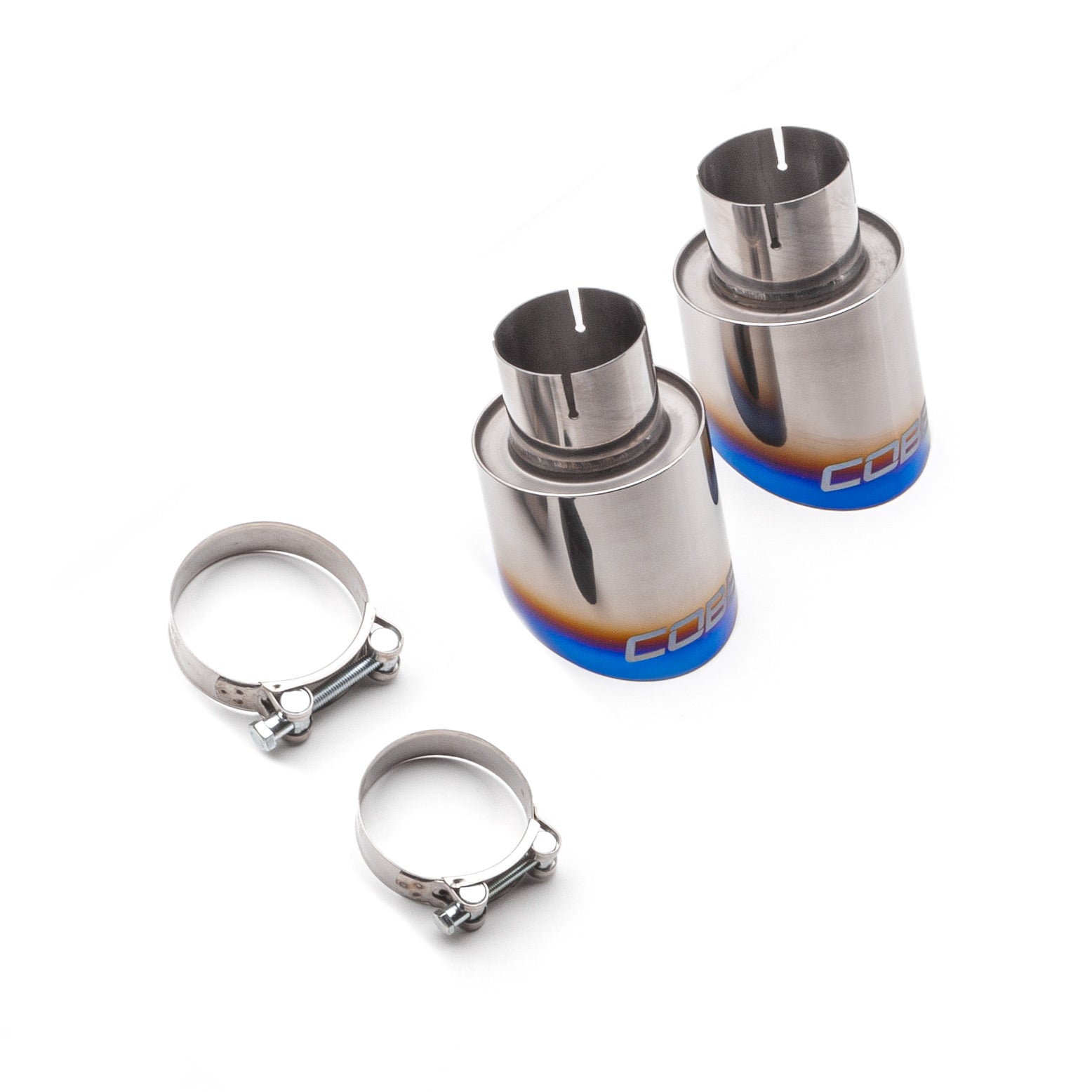 These aren't universal auto-parts-store junk. We designed these specifically for the COBB Titanium Cat-Back systems (both Sedan and Hatch). Because they use a 2.5" slip-joint inlet with included clamps, you aren't stuck with a static position. You can loosen the clamp and adjust the rotation to follow the curve of your bumper, or adjust the length to get the exact amount of "poke" you want. It’s the easiest way to change the entire attitude of your car in about 10 minutes with a simple socket wrench.