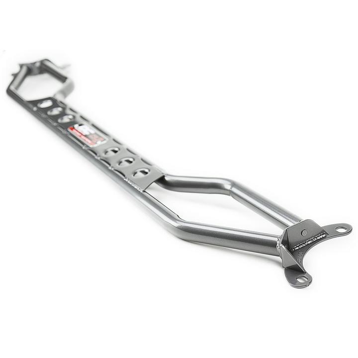 Dual bar design with integrated steel brace virtually eliminates body flex for improved handling and drivability. Mounts directly to strut tower with no modifications required, includes comprehensive instructions and all necessary hardware, Gunmetal powder coat delivers lasting good looks.