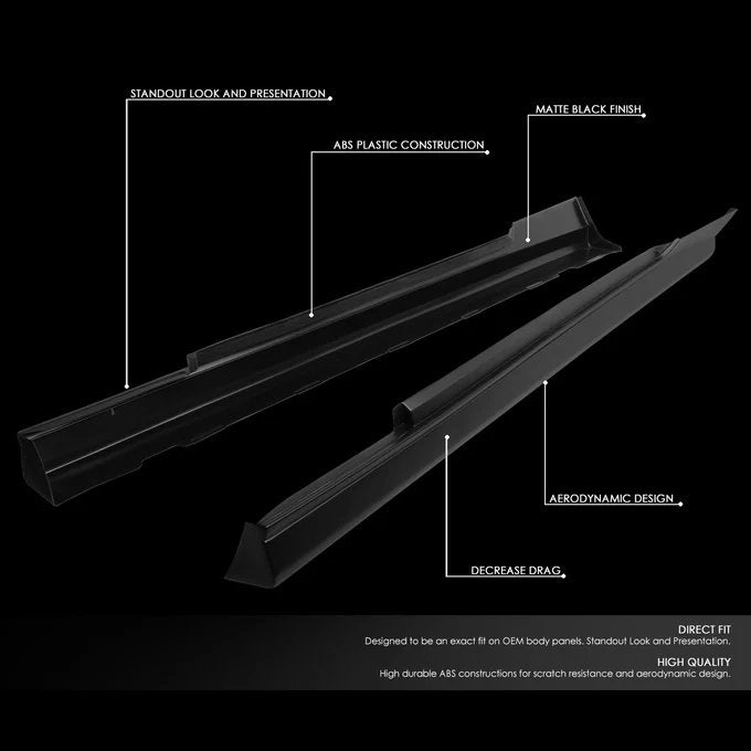 A massive rear wing might look cool on the track, but dragging all that aerodynamic resistance around town just kills your top-end speed. DNA Motoring engineered these ground effect side skirts to solve that exact problem, delivering the ultimate blend of neck-breaking street style and highly functional aerodynamics. By extending the bodywork closer to the pavement, these heavy-duty ABS plastic body skirts actively manage underbody airflow, effectively sucking the chassis down to the road for increased high-speed stability without the nasty drag penalty of a traditional spoiler. Whether you decide to bolt them on straight out of the box to rock that rugged matte black finish or send them to the paint booth for a seamless color-matched look, they instantly add a completely different look to the vehicle, erasing that boring, high-riding factory commuter vibe.