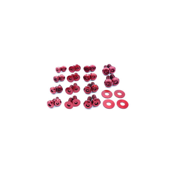 This 30 piece kit includes bolts and washers manufactured from extremely durable, anticorrosive, and lightweight GR5 titanium metal.