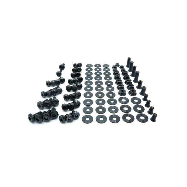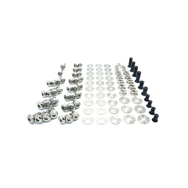 This 99-piece kit includes bolts, nuts, and washers manufactured from durable, anti-corrosive, and lightweight GR5 titanium metal.