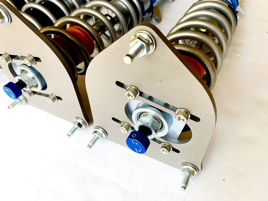 A: We are still working on this. We have successfully fitted Group N mounts to the fronts but are finding it necessary to modify the rear tops to fit them heavily. We do have a middle ground of fixed-position rubber bushing upper mounts, they're not OE M, but they have a rubber bushing instead of the spherical bearing.