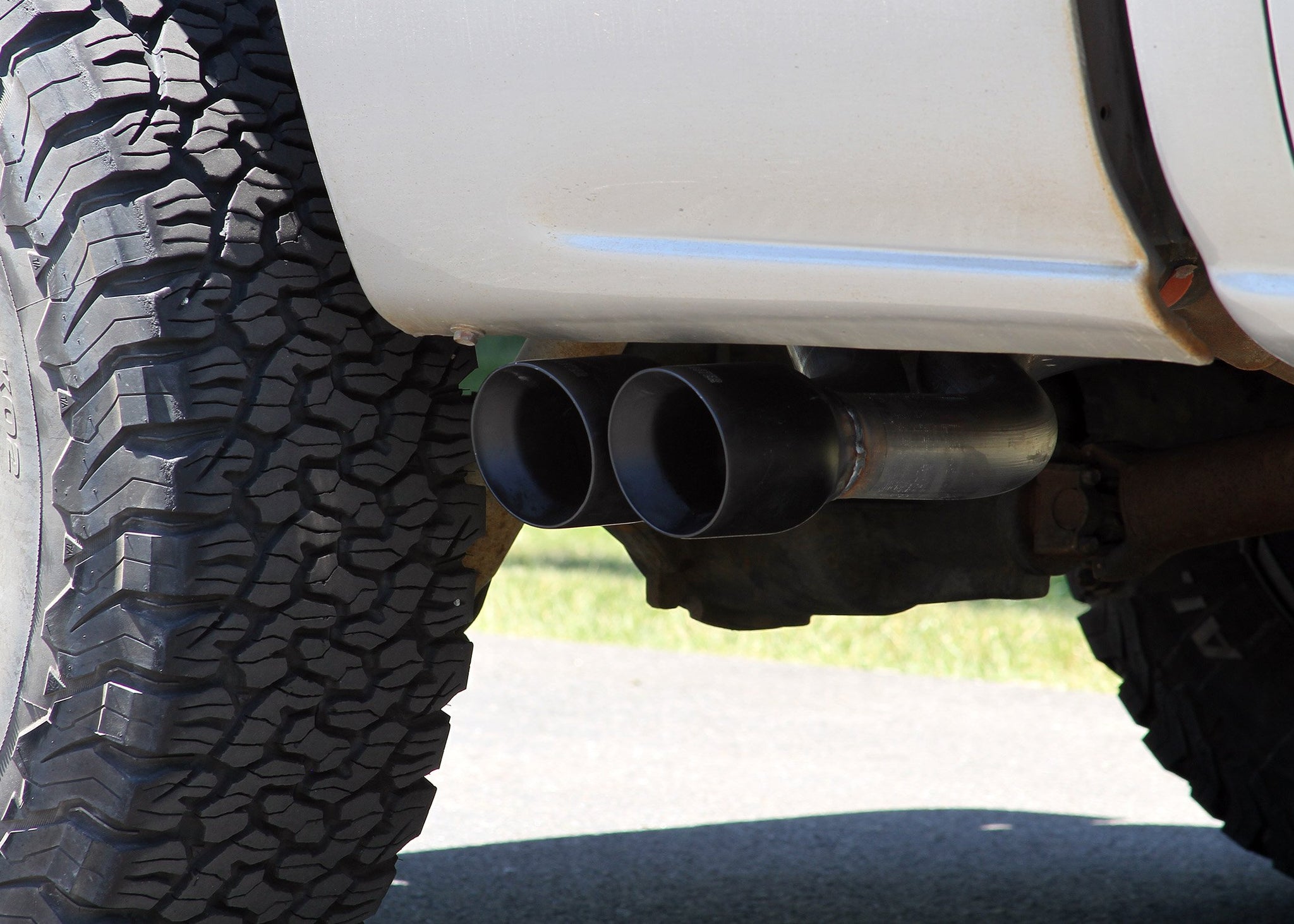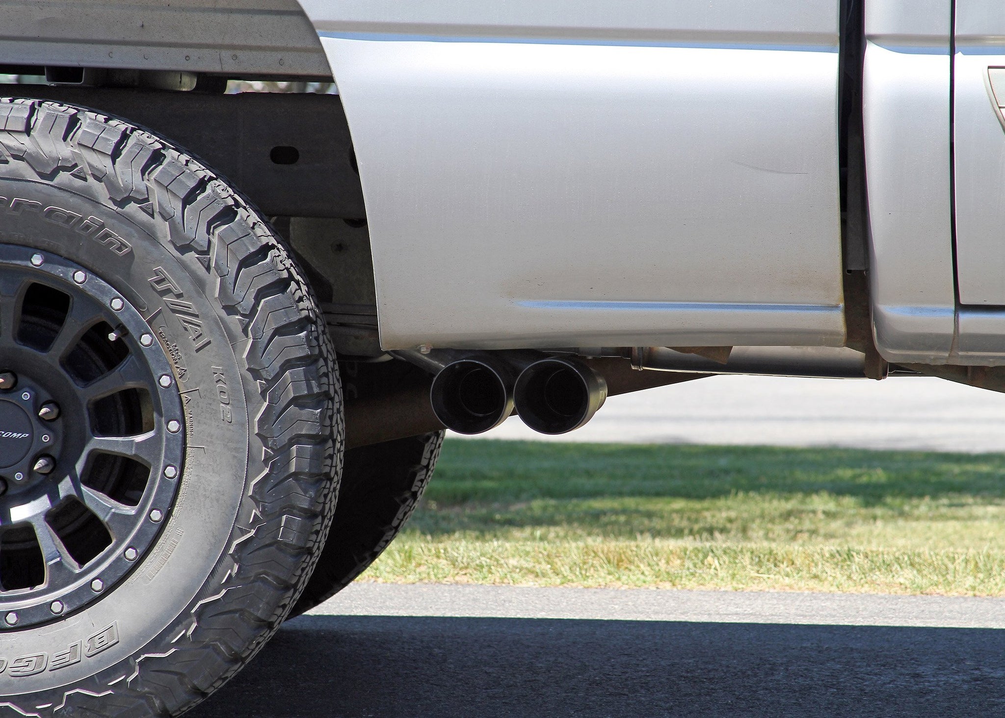 - Dual 4.00-inch black ceramic coated tips add a custom look to the truck