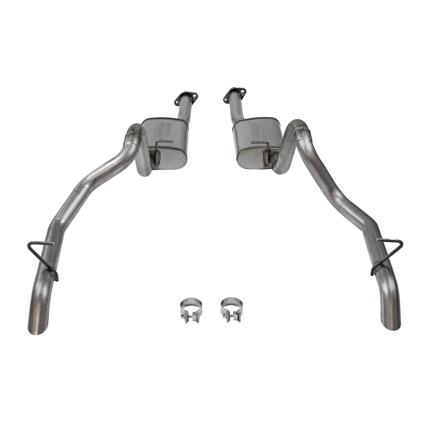 This Flow FX cat-back exhaust system is designed for the 1987-1993 Ford Mustang GT with the 5.0L engine. Features include 409 stainless steel construction for added durability and 16-gauge 2.5-inch mandrel-bent tubing for unrestricted exhaust flow with tailpipes that exit in the stock location behind the rear valance. The stainless "straight-through" Flow FX performance mufflers deliver a moderate yet deep and powerful sound while the interior sound is kept very mild. The system uses the factory hanger locations and includes detailed instructions and all hardware necessary for a quick and easy installation you can do at home. Backed by Flowmaster's Lifetime Limited Warranty.