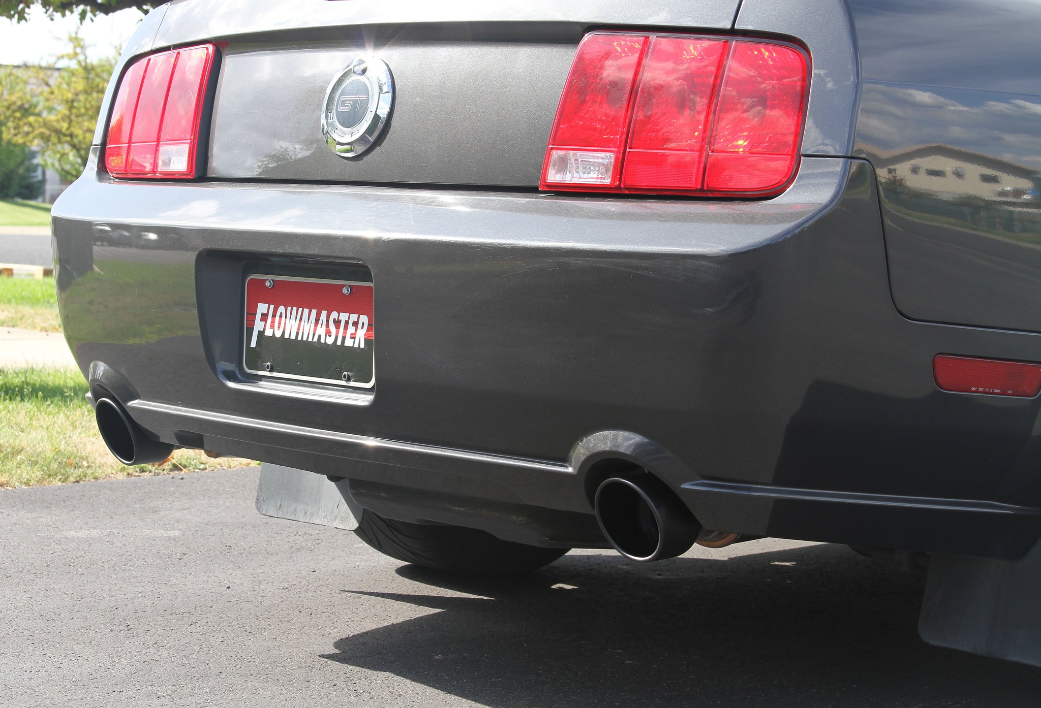 Introducing our new Flow FX Axle-back exhaust system for 2005-2010 Ford Mustang GT, Shelby GT, GT500, California Special and Bullitt cars with the 4.6L and 5.4L engines. Features include dual 3.00-inch mandrel-bent stainless steel tubing running into a pair of compact round Flow FX "straight-through" performance mufflers for a deep tone. The large 3.00-inch core mufflers provide maximum performance, are constructed from bright 409S stainless steel and utilize the factory hanger locations for an easy installation. The mufflers are finished off with large 4.50-inch black ceramic coated stainless steel tips filling out the factory exhaust cutouts in the lower valance. Designed for easy installation, includes all necessary parts, hardware, and detailed instructions. Covered by our Lifetime Limited Warranty. Notes: Includes GT500KR models.