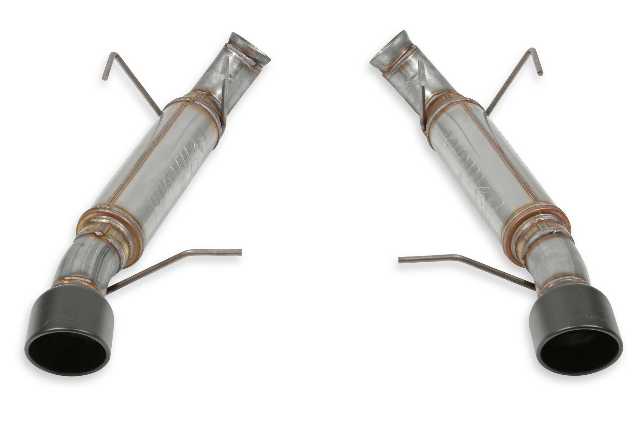 Introducing our new Flow FX® Axle-back exhaust system for 2013-2014 Ford Mustang GT coupes, convertibles and 2013 Boss 302 models with the 5.0L engine. Features include dual 3.00-inch mandrel-bent stainless steel tubing running into a pair of compact round Flow FX "straight-through" performance mufflers for a deep tone. The large 3.00-inch core mufflers provide maximum performance, are constructed from bright 409S stainless steel and utilize the factory hanger locations for an easy installation. The mufflers are finished off with large 4.50-inch black ceramic coated stainless steel tips filling out the factory exhaust cutouts. Designed for easy installation, includes all necessary parts, hardware, and detailed instructions. The system is covered by our Lifetime Limited Warranty.