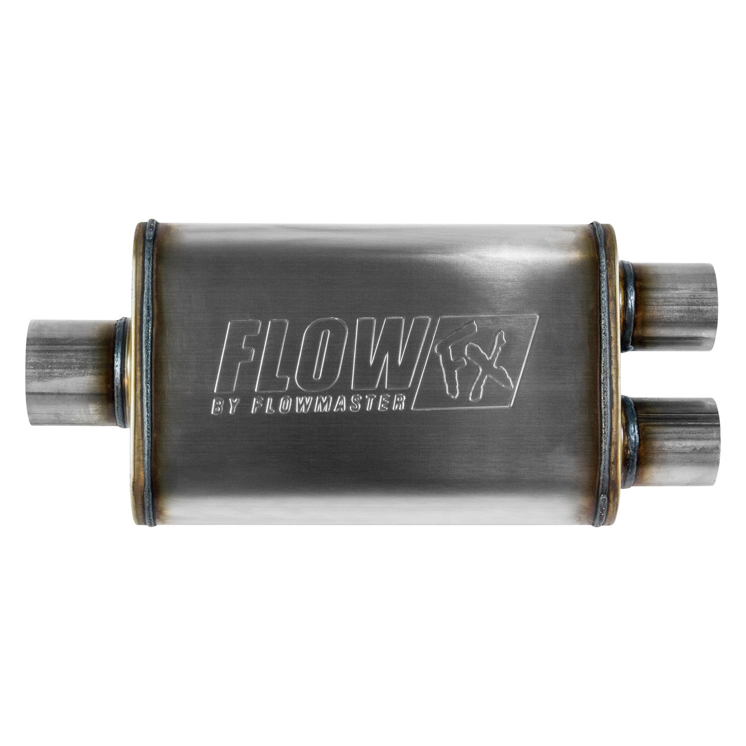 Introducing our new "straight-through" FlowFX universal performance mufflers. Exterior features include; fully migwelded "œbright"� 409 stainless steel construction with the FlowFX logo embossed on the both sides of the case. The interior features a "straight-through" stainless steel perforated core surrounded with high temperature sound absorption materials delivering a deep mellow tone.