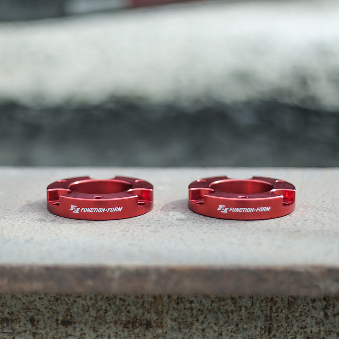 Elevate your daily driving experience with the Function and Form 2 Inch Leveling Kit, tailored for 1995-2004 Toyota Tacoma and 4Runner models. This leveling kit is designed to bring a touch of style and practicality to your vehicle, providing a two-inch lift that not only increases ground clearance but also ensures the retention of the factory driving dynamics that make your Tacoma or 4Runner a joy to drive every day.