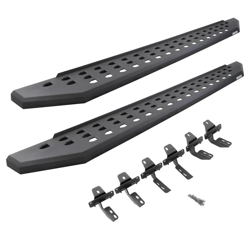 - Cab length running boards for popular crew cab for popular crew cab and extended cab trucks.