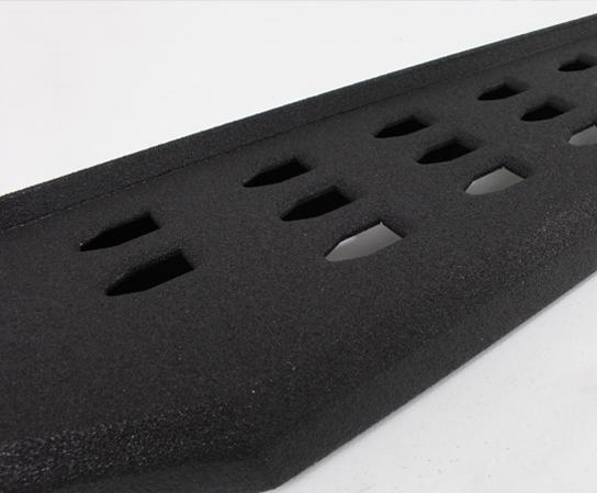 RB20 Running Boards offer off road styling while also helping to protect vehicle finish and providing a wide full-length step platform for easy entry to vehicle. Bolt-on Drop Steps enhance access to vehicle, Black Textured Powdercoat