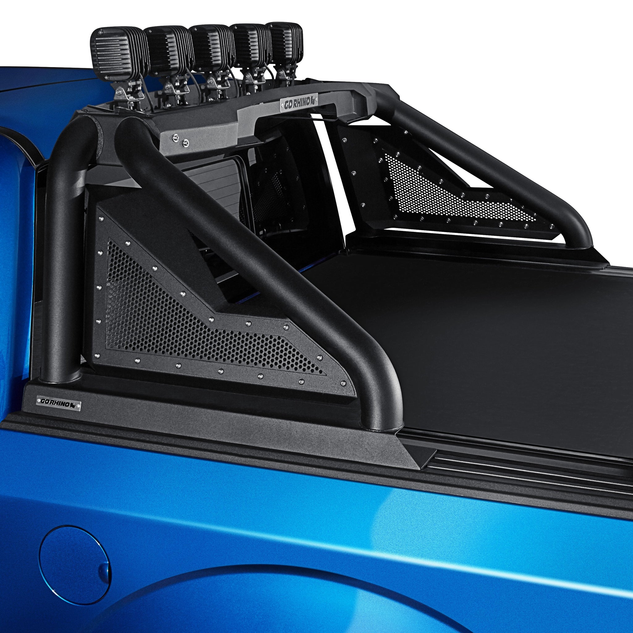 Add style to your pickup truck with Go Rhino's Sport Bar 2.0. It's a universal fit sport bar available for full size pickup trucks that includes the power actuated retractable light mount bar.