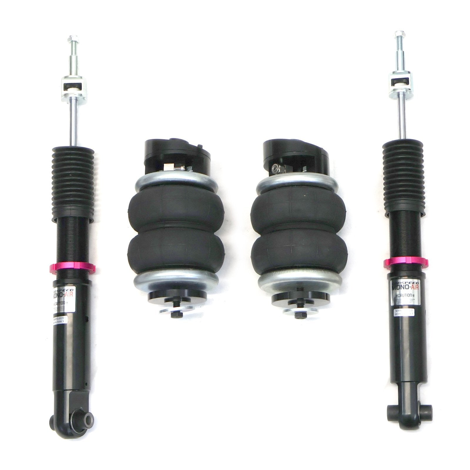 Godspeed Project's Mono-AIR Suspension Strut Kit includes both front and rear struts that works with most air management system out in the market. Mono-AIR features mono-tube shock with 32 stages of rebound damping adjustments that allows you to control suspension return to proper position rapidly or slowly depends on driving condition. High quality rubber air bags are used in replace of springs that allows easy ride height adjustment, stainless steel fittings included. Due to the importance of rubber air bag role in the suspensions kit, high quality rubber material are used to withstand from drying out and cracking result in longer life when compared to cheap rubber material. Godspeed air struts are designed to be easy installation that should requires no modifications to your car or parts.