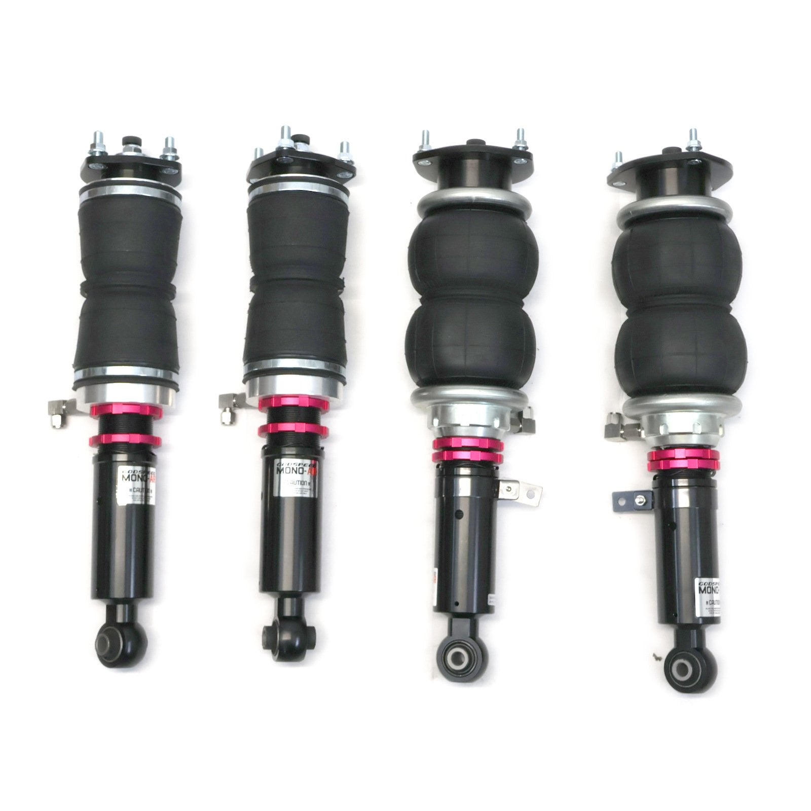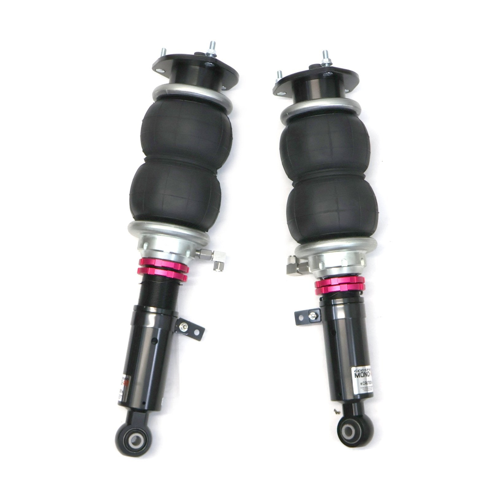Godspeed Project's Mono-AIR Suspension Strut Kit includes both front and rear struts that works with most air management system out in the market. Mono-AIR features mono-tube shock with 32 stages of rebound damping adjustments that allows you to control suspension return to proper position rapidly or slowly depends on driving condition. High quality rubber air bags are used in replace of springs that allows easy ride height adjustment, stainless steel fittings included. Due to the importance of rubber air bag role in the suspensions kit, high quality rubber material are used to withstand from drying out and cracking result in longer life when compared to cheap rubber material. Godspeed air struts are designed to be easy installation that should requires no modifications to your car or parts.