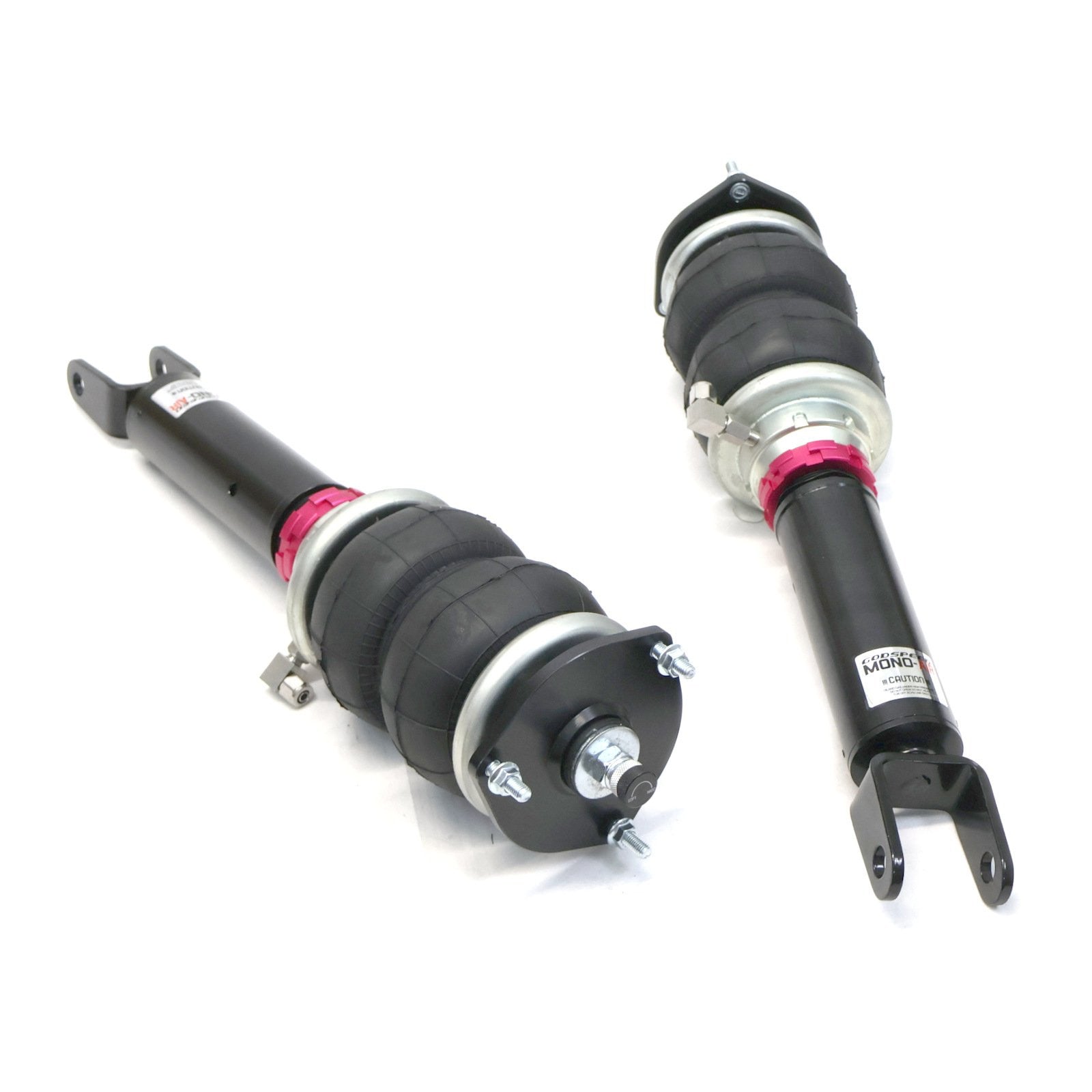 Godspeed Project's Mono-AIR Suspension Strut Kit includes both front and rear struts that works with most air management system out in the market. Mono-AIR features mono-tube shock with 32 stages of rebound damping adjustments that allows you to control suspension return to proper position rapidly or slowly depends on driving condition. High quality rubber air bags are used in replace of springs that allows easy ride height adjustment, stainless steel fittings included. Due to the importance of rubber air bag role in the suspensions kit, high quality rubber material are used to withstand from drying out and cracking result in longer life when compared to cheap rubber material. Godspeed air struts are designed to be easy installation that should requires no modifications to your car or parts.