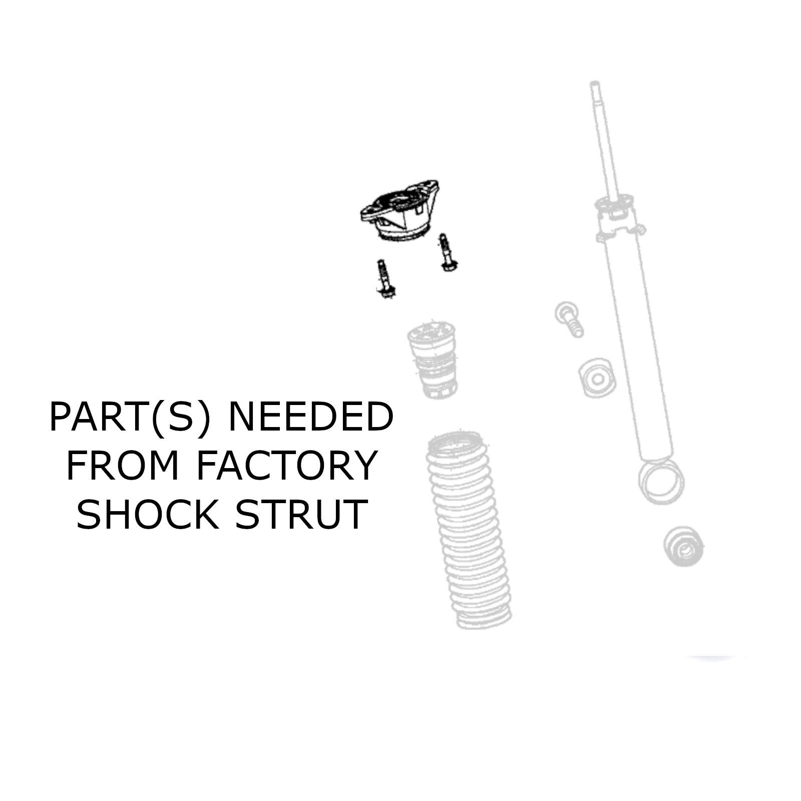 - Includes front top mounts. Requires reuse of OEM rear top mounts