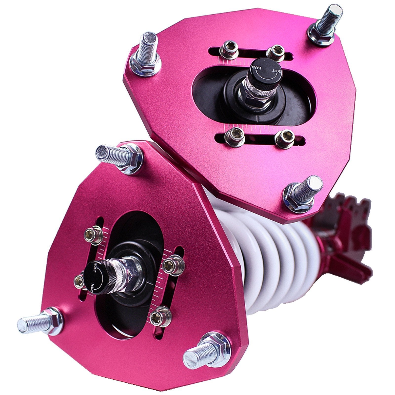 A big problem with a lot of entry level coilovers is that they use cheap shock oil, but GodSpeed doesn't follow that philosophy. Race quality shock oil ensures exceptional damper performance any any temperature, on or off the track. The GodSpeed coilover top hat uses a high performance Japanese KOYO 6204Z bearing pillowball mount (when applicable). Bottom shock brackets are also top quality and made from T7075 forged aluminum or carbon steel brackets for light weight and durability.