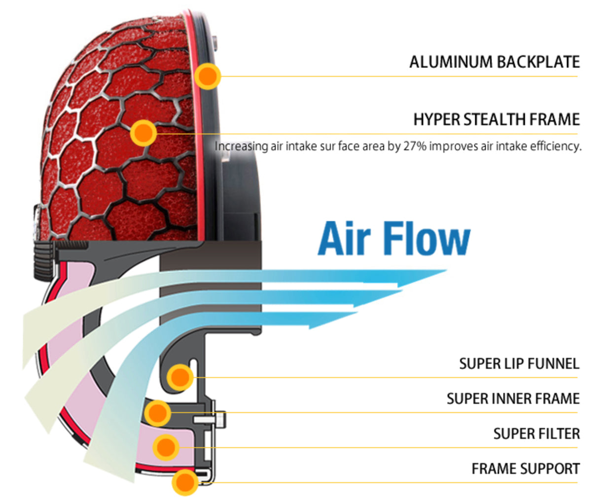 Hyper Stealth Frame: A next-gen stealth frame design that enhances intake efficiency by 27%, improving overall engine response and airflow.