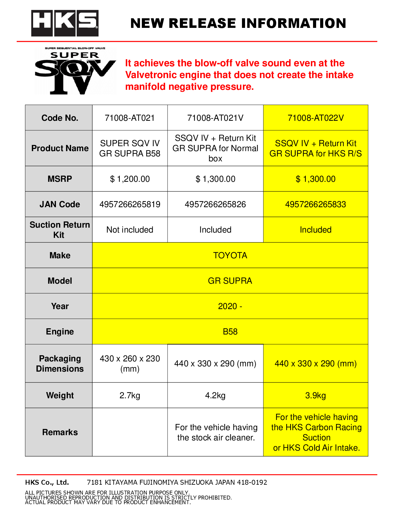 - 71008-AT022V - For the vehicle having the HKS Carbon Racing Suction or HKS Cold Air Intake.