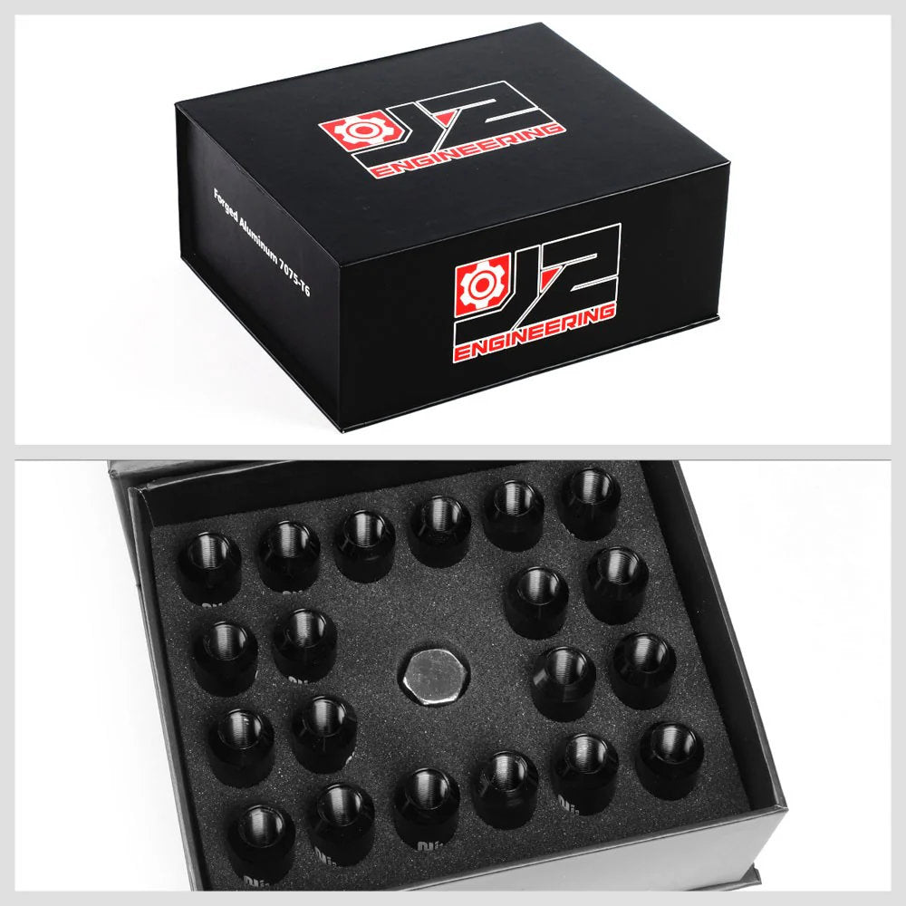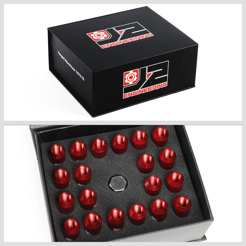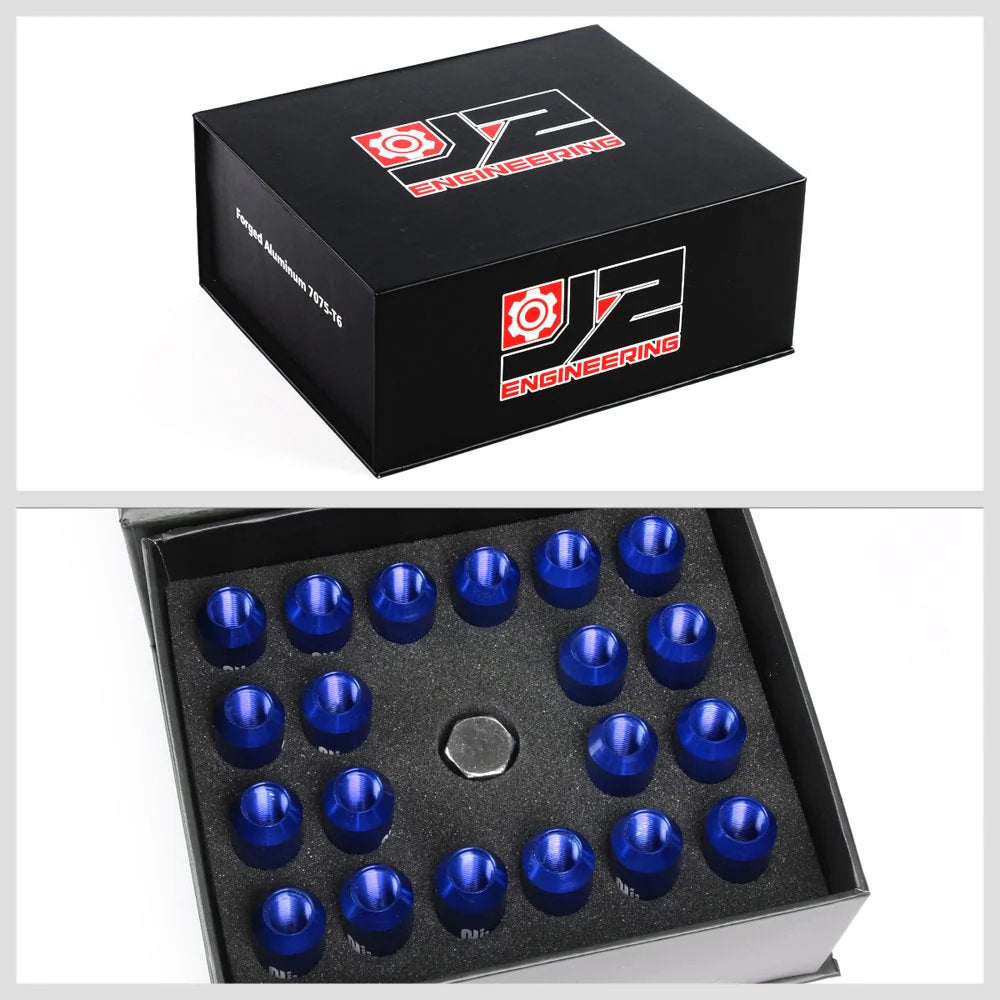 J2 Engineering Lug Nuts (M12 x 1.25) 16 Piece Set With Open End and Lock Nuts- Black / Blue / Red