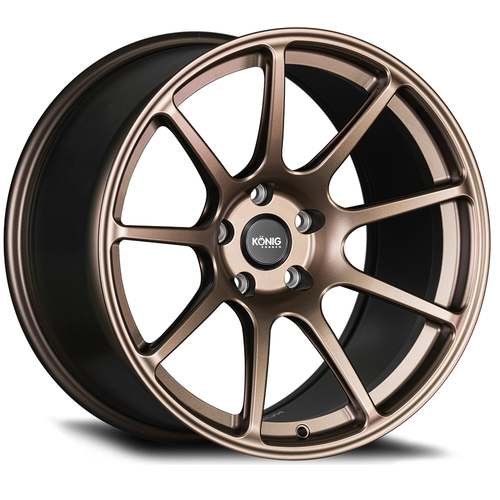Bolting heavy, mass-produced cast wheels to a high-performance build is the fastest way to kill its true potential and ruin its track presence. Enthusiasts demanded a fully forged, uncompromising option, and Konig delivered the breathtaking F5R Forged Wheels, engineering a track-focused tool designed to shave precious tenths off lap times while completely stealing the spotlight at any car show. Born from a staggering 10,000-ton forging process, these 18-inch and 19-inch rollers shed a massive amount of unsprung weight while offering a tensile strength that effortlessly eclipses standard flow-formed options. This isn't just about the stunning Satin Bronze or Ash Silver finishes; every single dramatic ball cut along the sleek 9-spoke layout was meticulously calculated using advanced Finite Element Analysis (FEA). This process removes excess aluminum from the inner webbing where it isn't needed, transferring stress into a rigid C-channel rear flange. Combine that precision engineering with deep, size-specific concavity profiles explicitly designed to swallow massive aftermarket brake upgrades without pushing the wheel out with dangerous spacers, and the result is a wheel that fundamentally upgrades how the vehicle accelerates, stops, and rotates through tight corners.