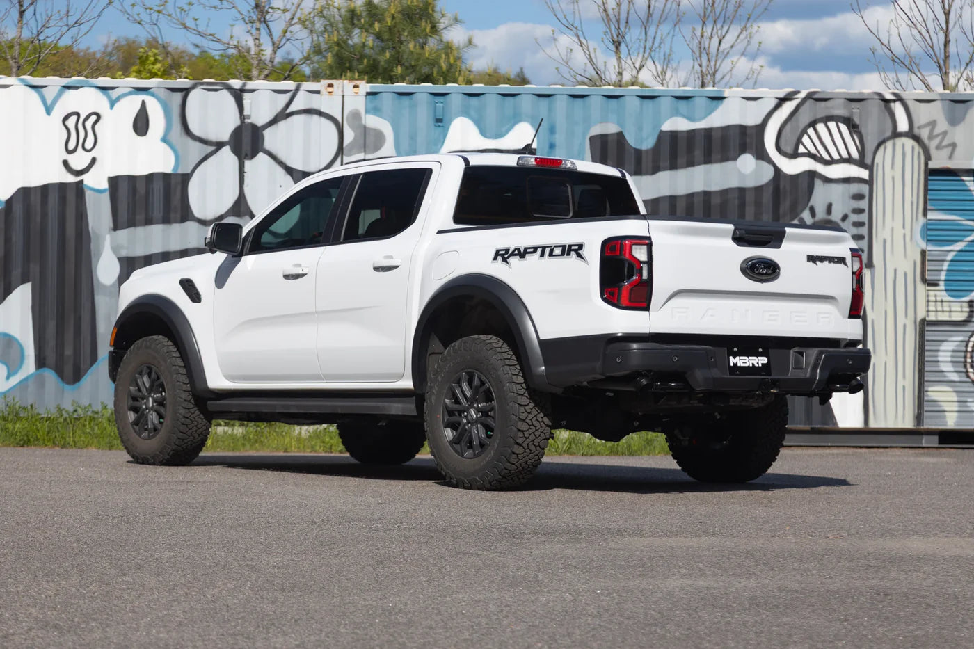 Upgrade your 2024-2026 Ford Raptor Ranger with the MBRP® 3-Inch, Armor BLK, Street Profile, Dual Rear Exit, Axle-Back Exhaust with Black Turndown Tail. 1-Year Warranty included.