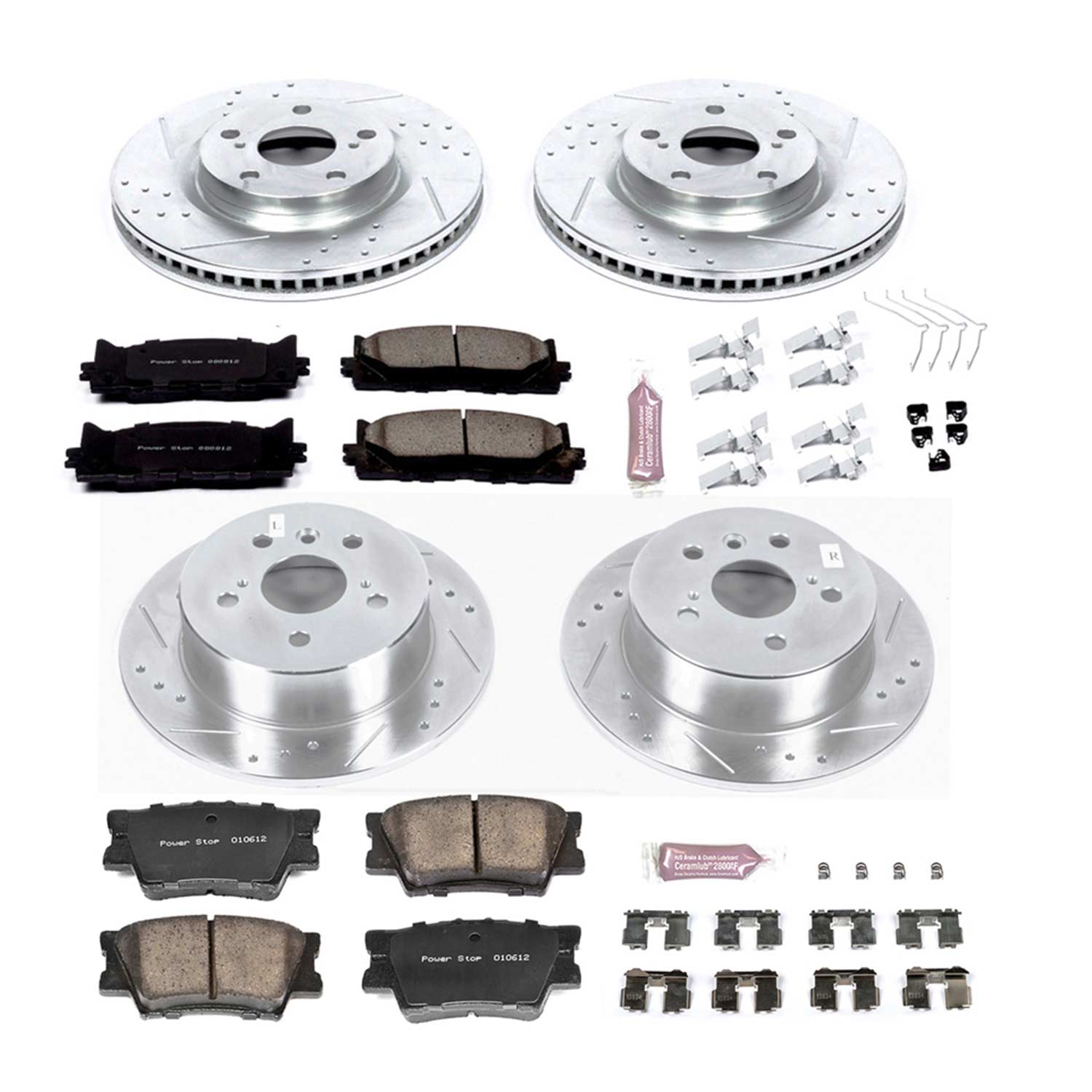 Forget standard, off-the-shelf parts. The Z23 Evolution Sport Brake Upgrade Kit comes with everything you need, from pads, rotors, and premium stainless steel hardware for an easy, bolt-on stopping power upgrade for your daily-driver. Along with increased braking power, our Carbon-Fiber Ceramic brake pads feature a dust and noise-free formula to keep those wheels looking great while you enjoy a quiet ride. The pads combine with Drilled, Slotted, & Zinc-Plated rotors that ensure a cool, smooth ride that protects against rust and corrosion. Give your daily-driver the easy performance upgrade it deserves with the Z23 Evolution Sport Brake Upgrade Kit.