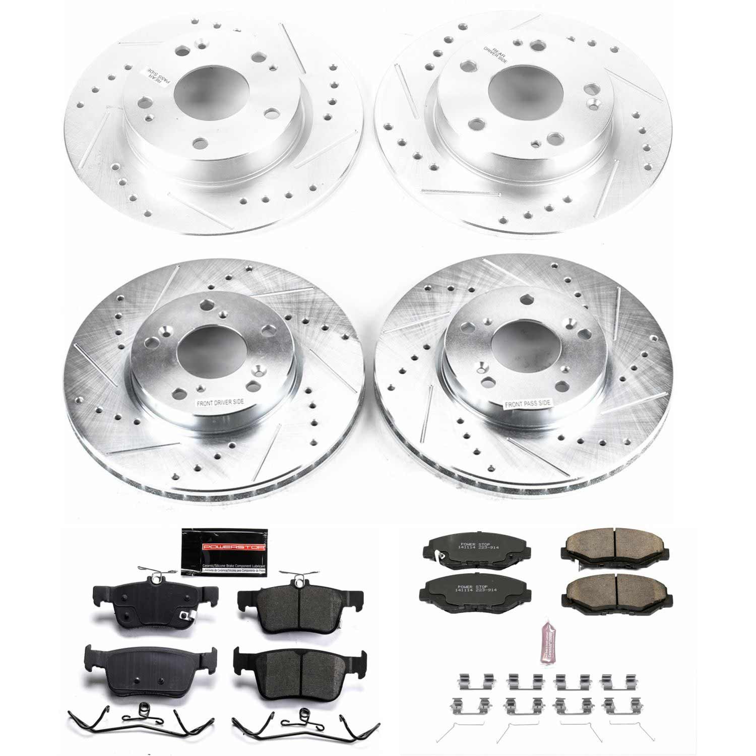 Forget standard, off-the-shelf parts. The Z23 Evolution Sport Brake Upgrade Kit comes with everything you need, from pads, rotors, and premium stainless steel hardware for an easy, bolt-on stopping power upgrade for your daily-driver. Along with increased braking power, our Carbon-Fiber Ceramic brake pads feature a dust and noise-free formula to keep those wheels looking great while you enjoy a quiet ride. The pads combine with Drilled, Slotted, & Zinc-Plated rotors that ensure a cool, smooth ride that protects against rust and corrosion. Give your daily-driver the easy performance upgrade it deserves with the Z23 Evolution Sport Brake Upgrade Kit.