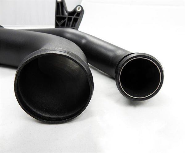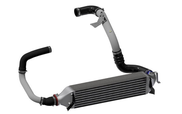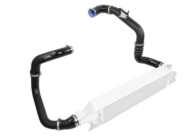 PRL upgraded charge pipe kit utilizes smooth flowing, larger inner diameter hot (1.50" factory compared to 2.00") and cold-side (1.5" factory compared to 2.5") for increased airflow and factory diameter hot-side outlet to aid in turbocharger spool. 4-ply silicone couplers are used throughout our design for a couple of reasons: