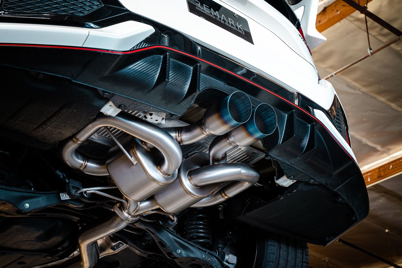 Thoroughgoing REMARK Catback Exhaust System with full 3inch piping with REMARK Front Pipe that are included in this ultimate exhaust setup the Honda Civic Type R FK8. This luxurious exhaust system is made with concept of performance and adrenaline driven Civic Type R with comfort that reduces unwanted sound/noise to the maximum. Factory track ready Civic Type R with no droning even for daily-driven machines!