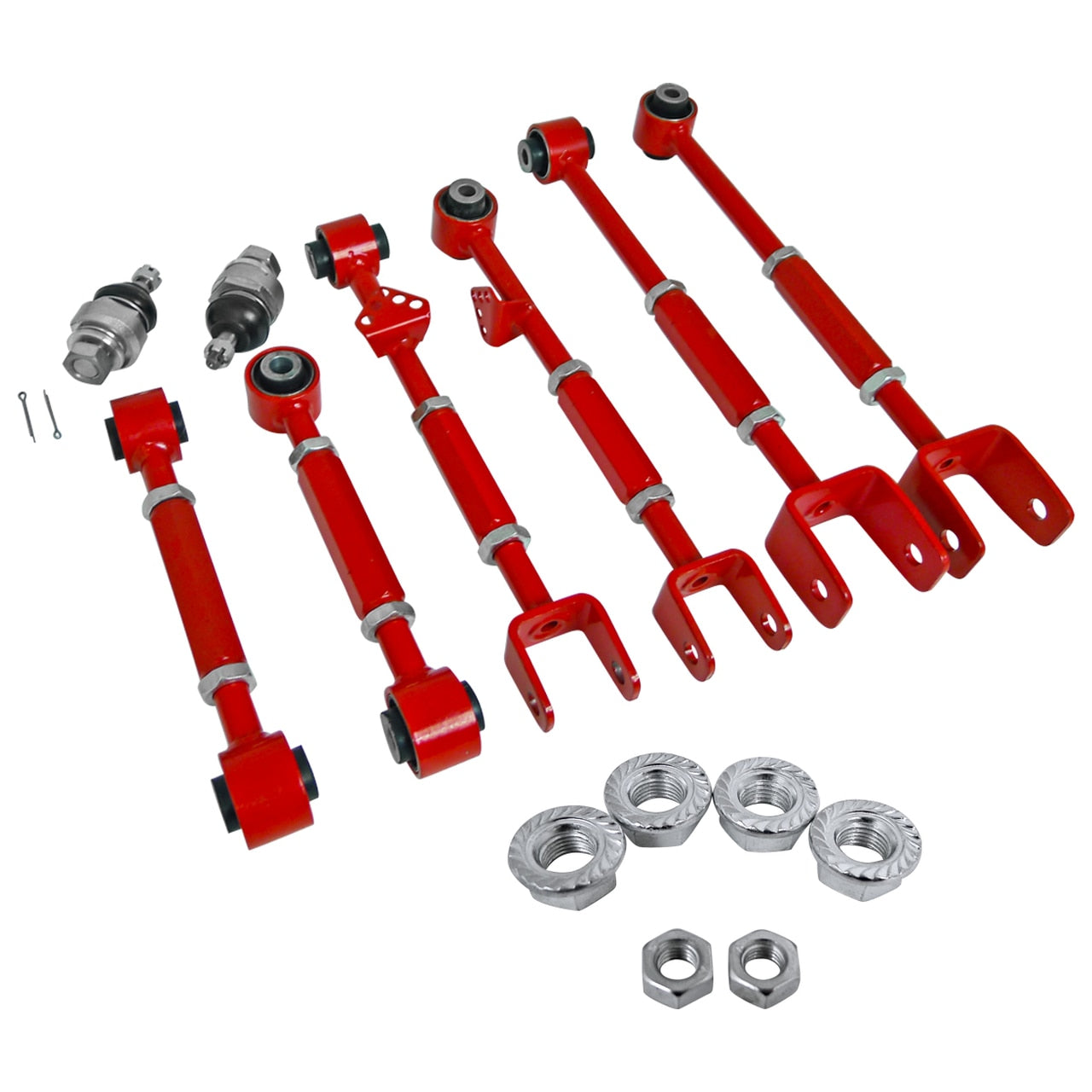 - Comes with 2 pieces (left & right) of front adjustable lower ball joints & 6 pieces (left & right) of rear adjustable control arms