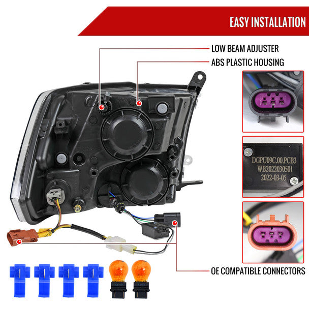 - Designed for a direct fit, direct replacement for your OEM factory headlights