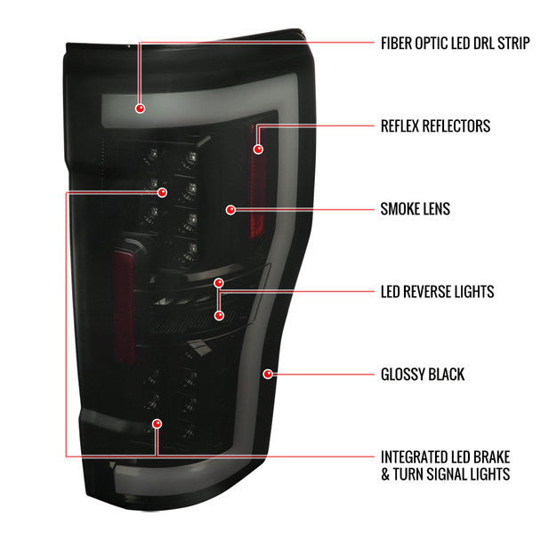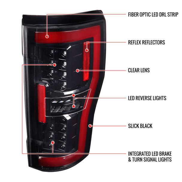 Upgrade the rear lighting of your 2017, 2018, or 2019 Ford F250, F350, F450, or F550 with modern LED-bar tail lights from Spec-D. These units have a sleek bar-style LED design for brake, tail, and signal functions. You can choose from various finishes and lens styles to match your truck’s appearance. The bolt-on design guarantees a direct fit without the need for cutting or modifications.