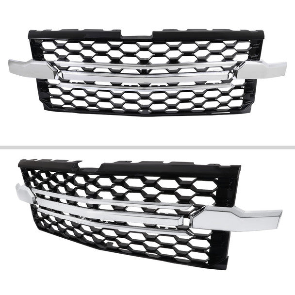 - Comes with (1) front grille Glossy black finish with Chrome trim or Glossy All black finish