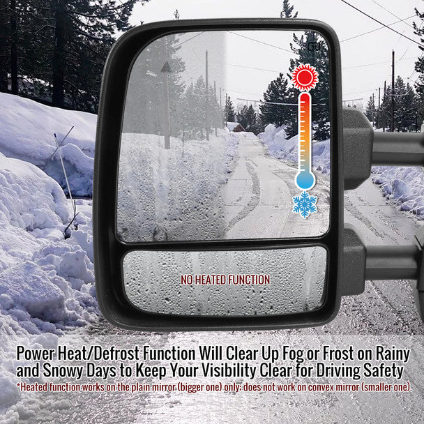 - Power-adjustable main mirror glass allows for quick angle changes from inside the cabin.