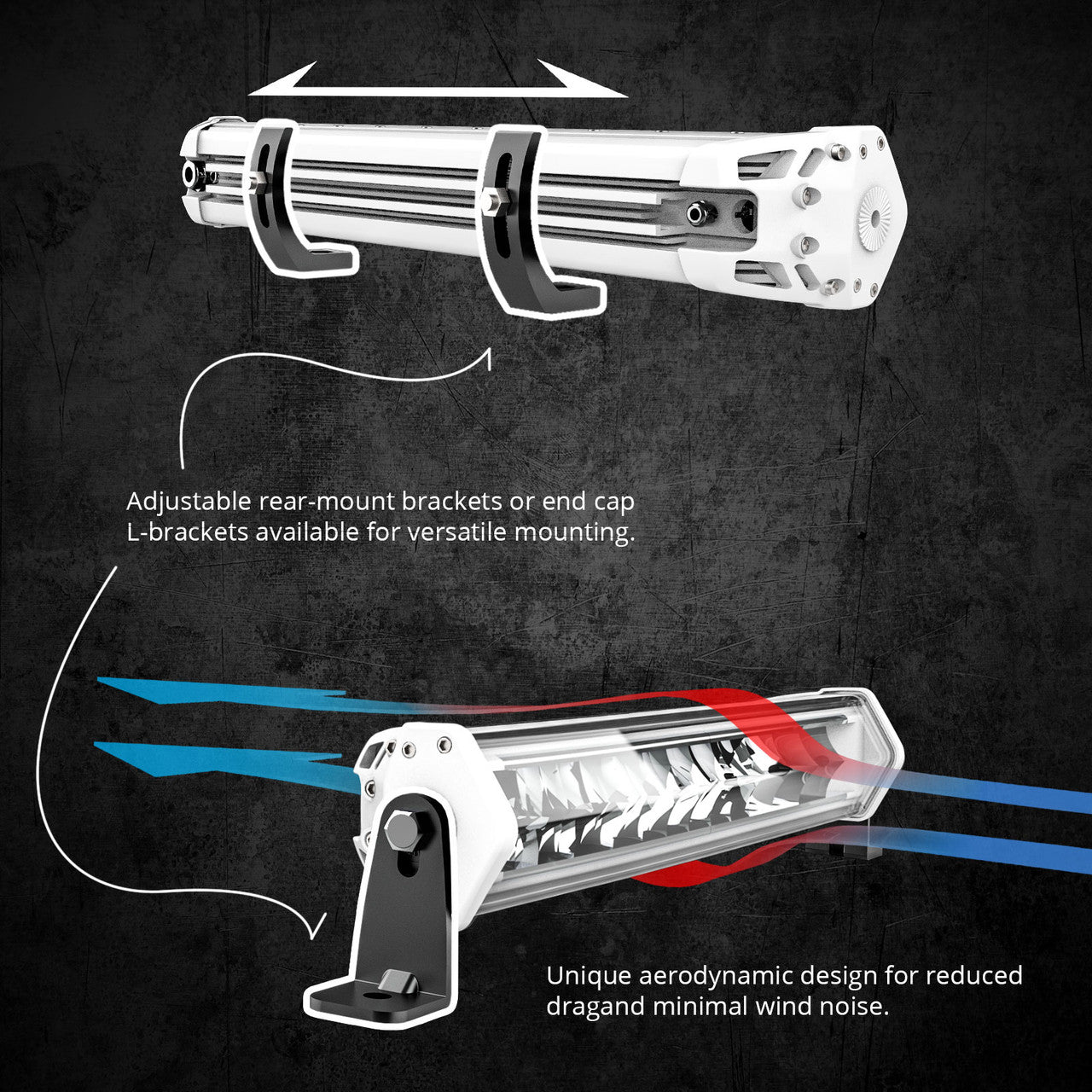 The plug-n-play data wires connect multiple light bars in daisy-chain style, leading all the way to one central controller. Each light bar can be configured to face one of the four directions: front, left, right, and rear. Different light bars can connect to its own power source. Together multiple light bars forge a seamless system that instantly lights up where you need the most.